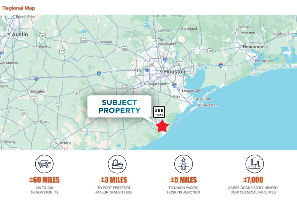 • Located within 2-Miles from Dow Chemical Company: Operating the Largest Integrated Chemical Manufacturing Plant in the United States